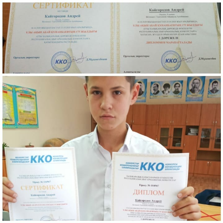 Олимпиады- это отличная возможность для школьников не только проверить свои знания,но и научиться преодолевать трудности и продемонстрировать возможности. Ребята нашего интерната по наставлению Айымкуль Ауезбековны Тургалиевой, решили участвовать на онлайн - олимпиадах, попробать свои силы в знаниях по географии. А олимпиады были международного и республиканского значения, задание были направлены на выявление знаний основных понятий, терминов, определений, изучаемых на уроках географии и естествознания. Воспитанники получили хорошие результаты на конкурсах. Среди них призовые места заняли Кайгородов Андрей, Иргалин Шамиль, Приходько Виталий, Самарина Ангелина, Рой Элеонора, Танирберген Мерхат. Ребята и их руководитель, дефектолог-олигофренопедагог Тургалиева Аймкуль Ауезбековна довольны своими достижениями.